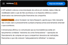 Somos referência nacional em recomendações de investimentos, figurando nos principais portais de notícias e levando recomendações para mais de 100.000 investidores todos os meses.